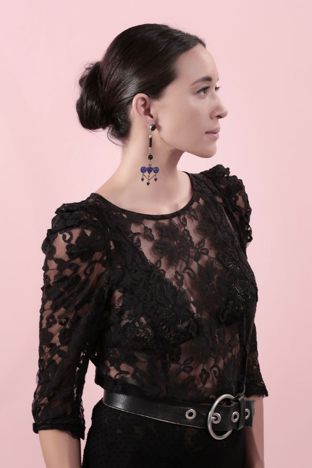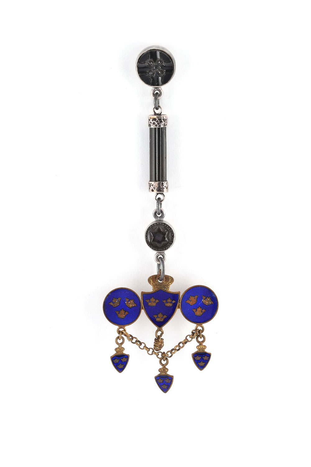 Vintage blue enamel brooch, Victorian black glass star stud in a sterling silver frame, black tourmaline in sterling silver caps, black Victorian glass button in sterling silver framed stud. Antique silver engraved cross, Afghanistan silver and blue enamel, black Victorian glass button with a sterling silver framed stud.