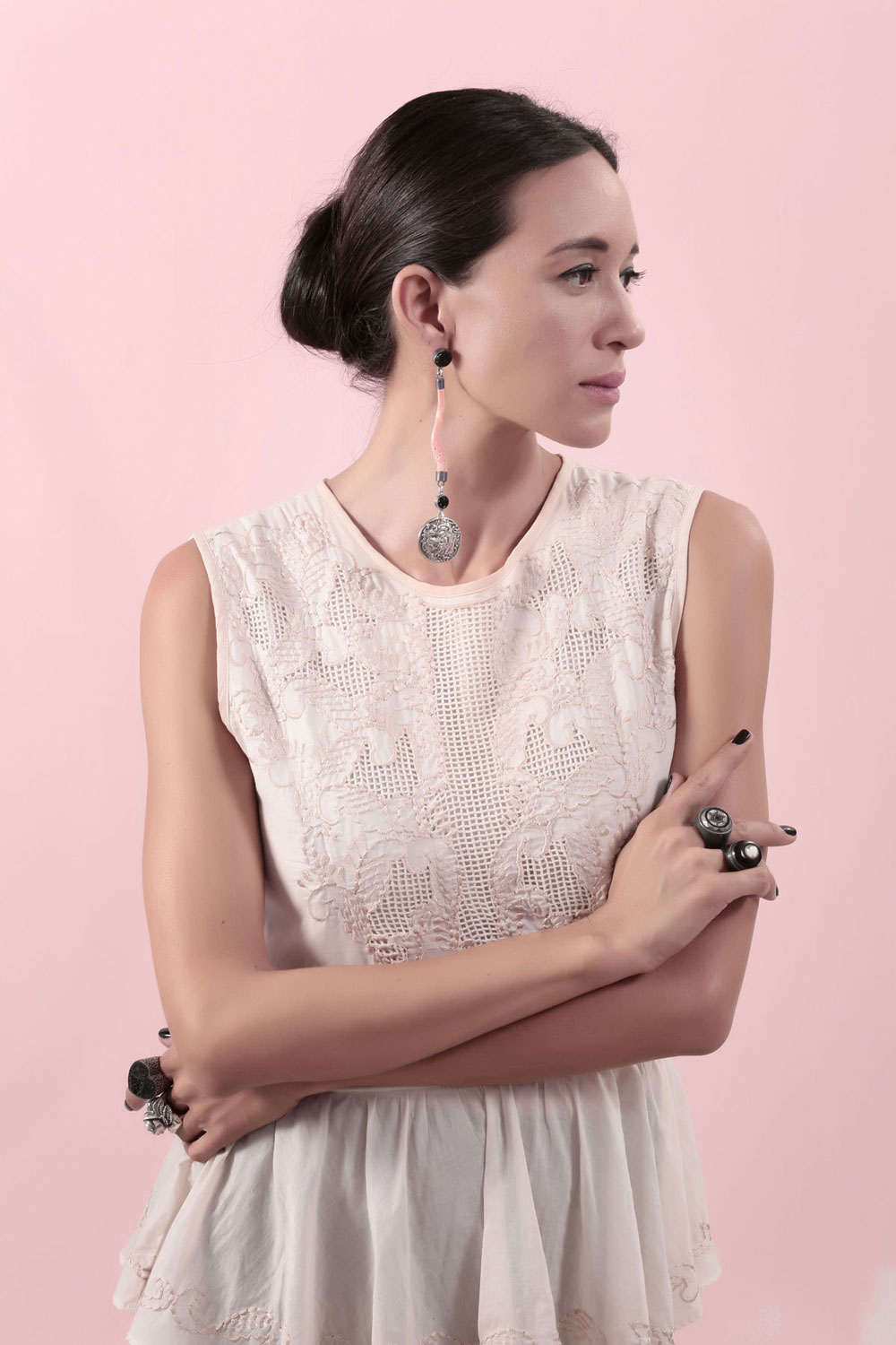 Victorian silver hallmarked English cherub buttons, Vietnamese raw coral with sterling silver oxidized caps, black Victorian glass buttons in sterling silver frames and studs.