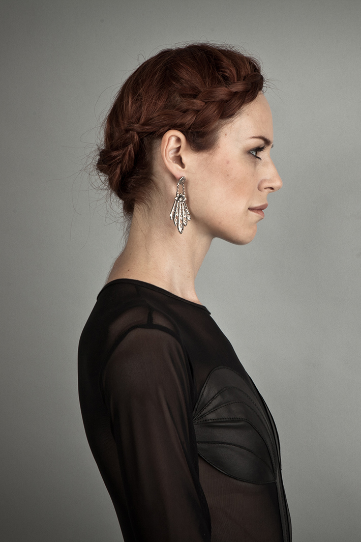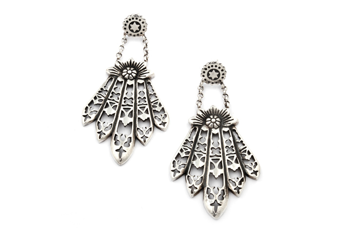 Sterling silver gothic fan earrings
